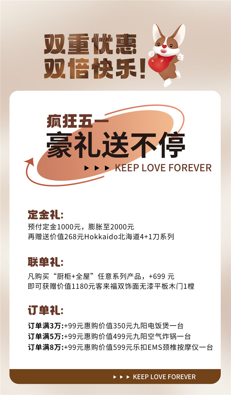 輕高定 再升級(jí)!客來福家居這波五一福利搶先看!