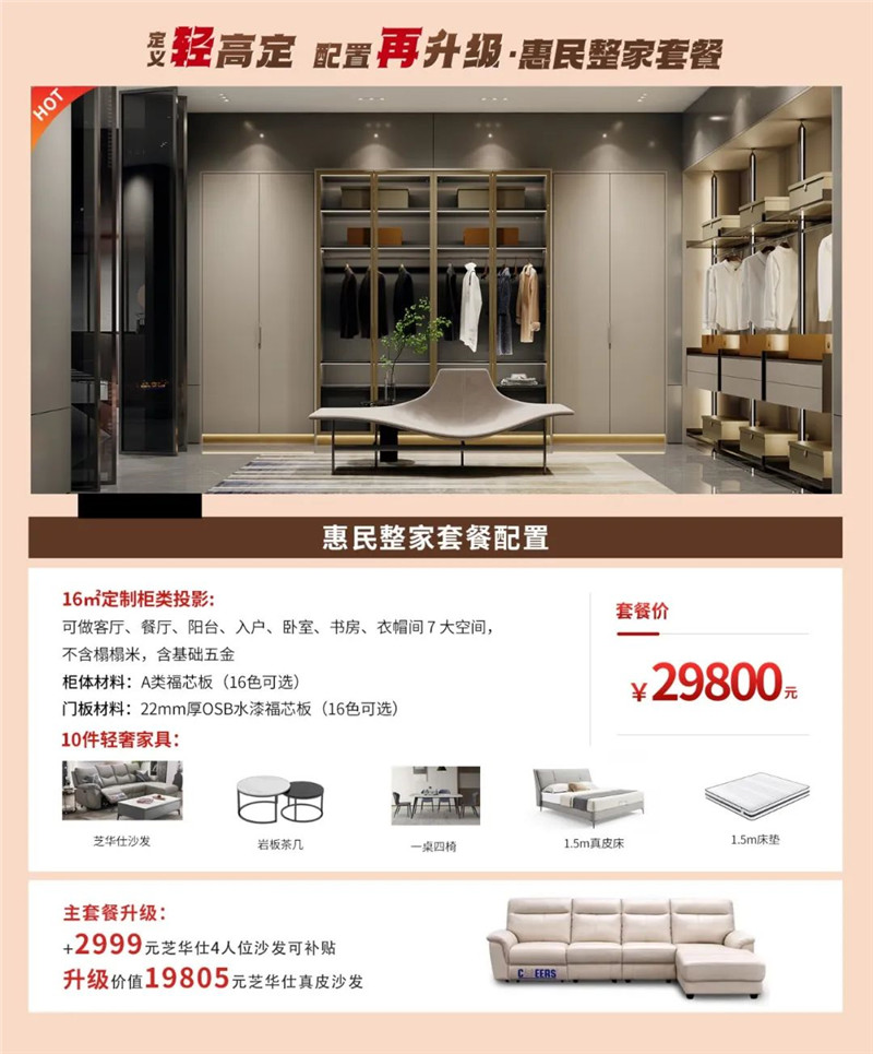 而“配置再升級(jí)”這一點(diǎn),客來福家居也落實(shí)在套餐中。在針對(duì)不同需求的家庭制定「全屋整家套餐」及「惠民整家套餐」時(shí),客來福還分別對(duì)套餐進(jìn)行配置升級(jí)的選項(xiàng)。
