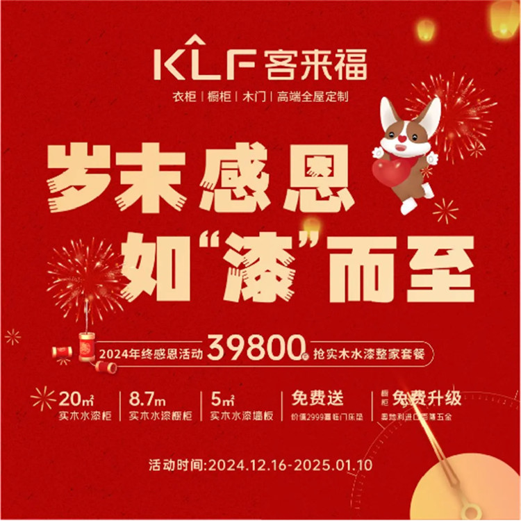 實木水漆,整家煥新。即日起至2025年1月10日,客來福家居聯(lián)動全國百城千家門店,共同開啟“2024年終感恩”全民狂歡活動,為家居品質(zhì)升級,環(huán)保升級,舒適升級。