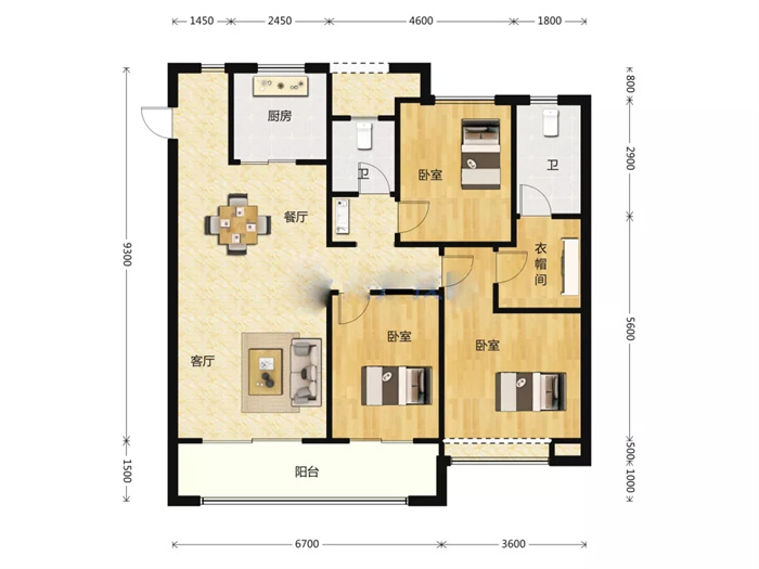 2.陽臺連通客廳和主臥,增加采光面積和透光度。