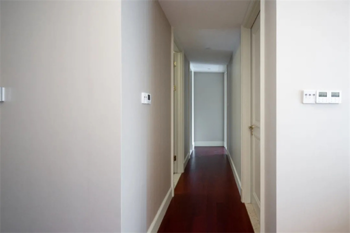 走廊中間空間相對較窄,在走廊盡頭為主臥和儲物間,若想要增加空間內(nèi)的豐富性,可以在走廊盡頭加上一幅掛畫,使色彩更為豐富。