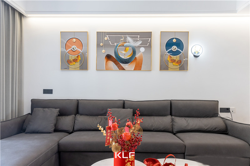 在沙發(fā)背景墻這一面,屋主則是選擇懸掛幾幅喜愛的掛畫,這樣的裝飾手法很常見,也很靈活,可以根據(jù)屋主的喜好隨時(shí)改變,更為現(xiàn)代。