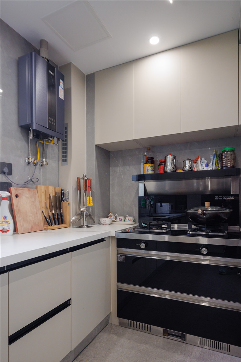 廚房里藏著一日三餐的愛(ài)意。廚房采用U型的整體布局,多層板柜體搭配水漆柜門讓櫥柜更堅(jiān)實(shí)耐用。