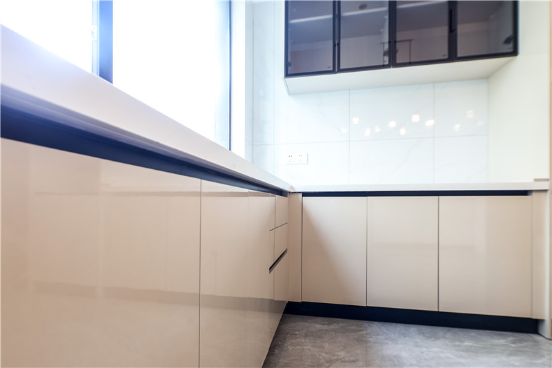 廚房選用百搭經(jīng)典色超晶板茶白,清新又簡單。這款顏色是客來福的熱門家居色,不挑風(fēng)格,時尚好看,整個廚房從視覺效果上干凈整潔,也符合廚房的所需要的空間效果。