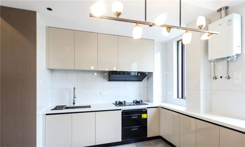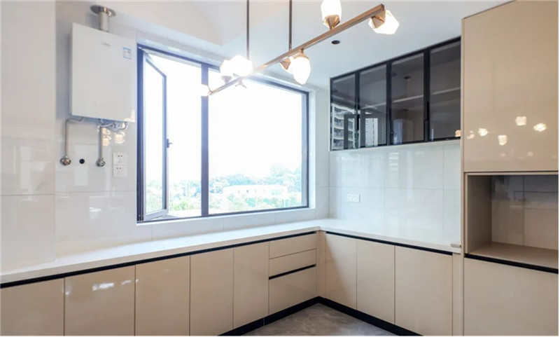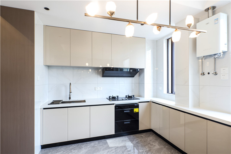 U型櫥柜設(shè)計,合理利用空間,將收納發(fā)揮至理想狀態(tài);廚房常見的免拉手設(shè)計提高整體顏值,既簡約舒適,又實用安全。