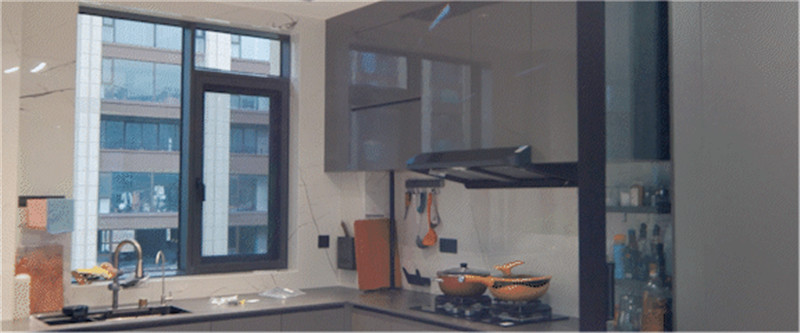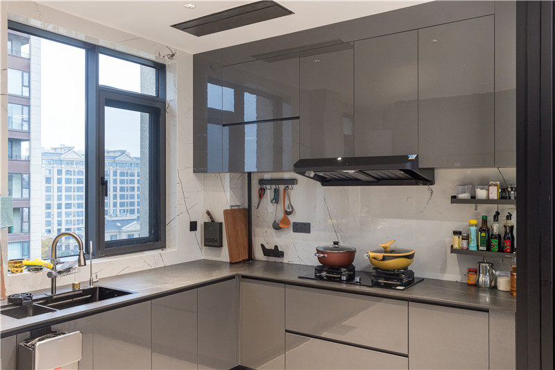 廚房U型構(gòu)造,根據(jù)墻體布局而建,洗切烹盛的動(dòng)線提升便捷度。