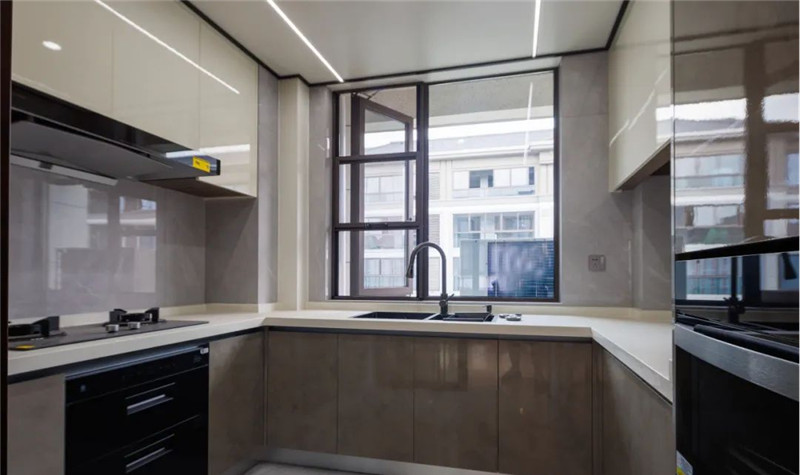 柜門都選擇了免拉手設(shè)計(jì),使用起來更安全,視覺上簡潔舒適。