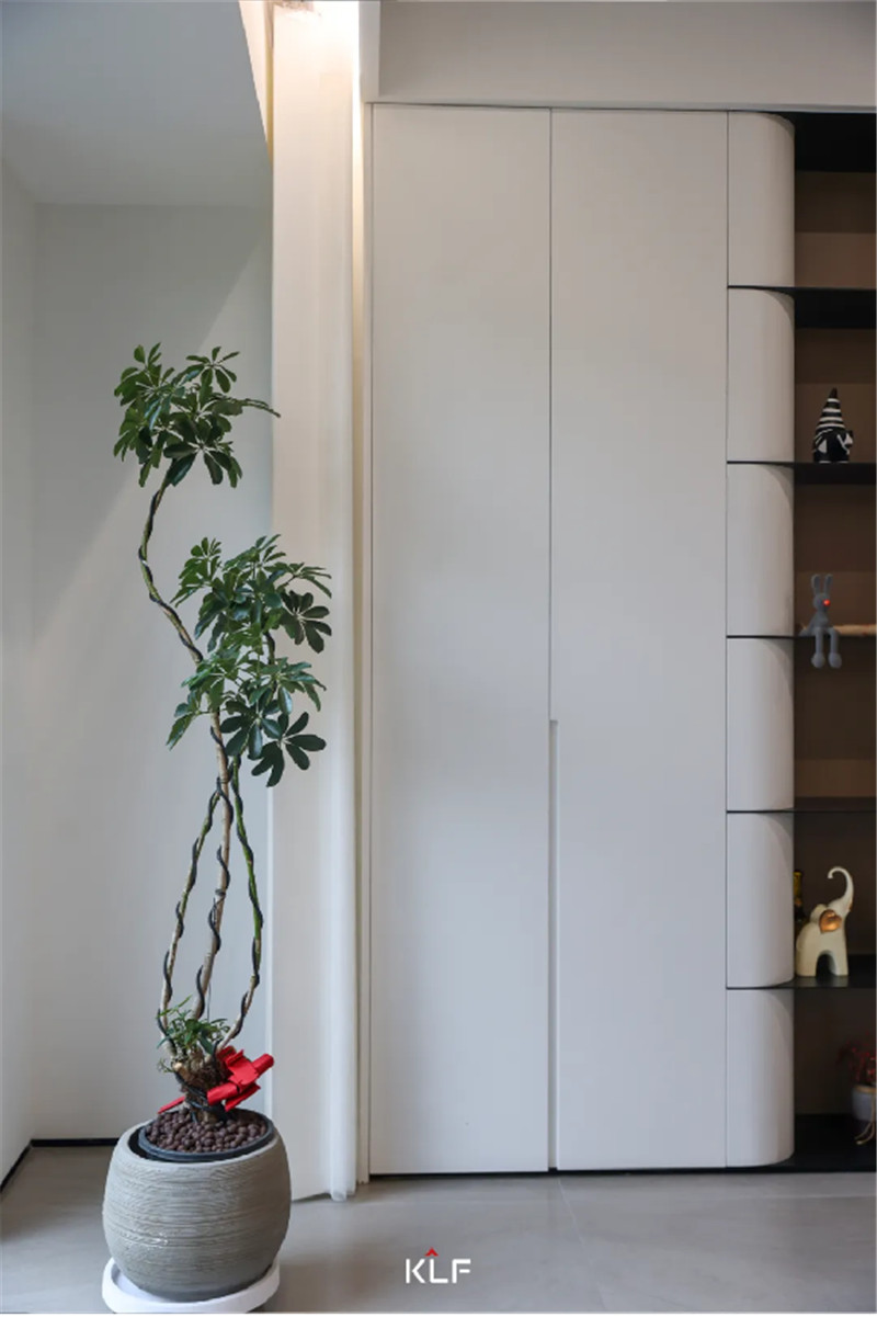 科技直紋/茶白作為過渡從客廳經(jīng)由走廊延展到臥室