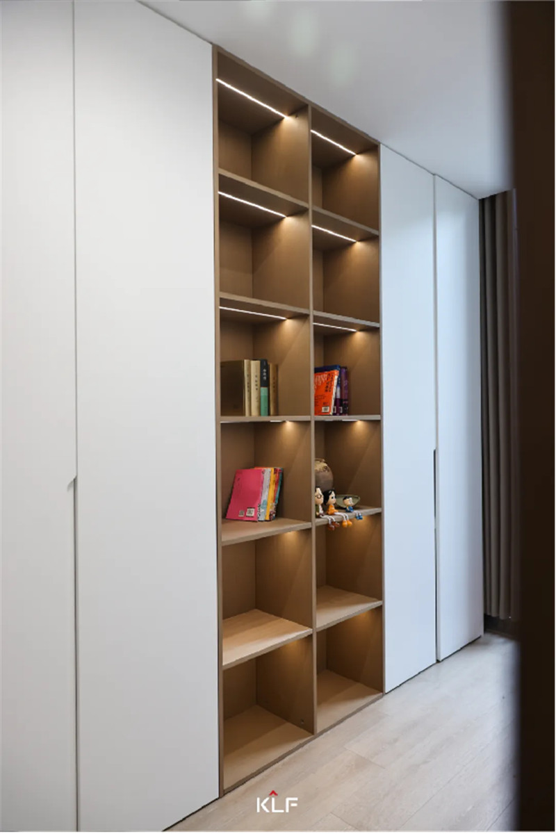 在電視背景墻對側(cè)做了整面收納柜
