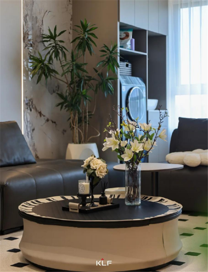 客廳以黑白灰棕為主題配色,沉穩(wěn)大氣,深淺搭配、明暗呼應(yīng)是層次感和格調(diào)的秘訣,深度還原了意式暖咖輕奢風(fēng)格的簡約奢華、舒適典雅。