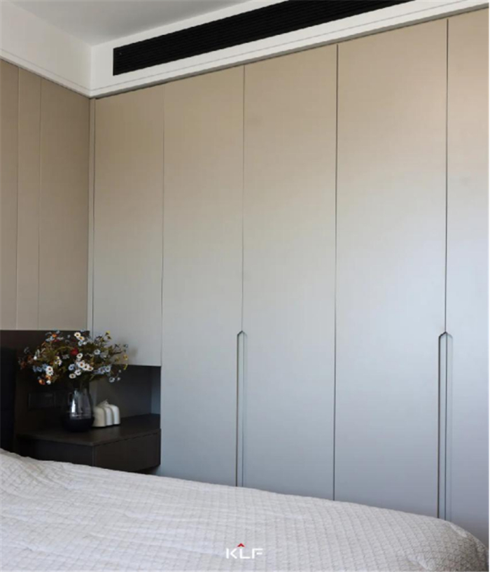 茶白衣柜與床頭背景墻流暢過渡,延伸床頭柜與半高護墻板自然銜接。分割塊面構(gòu)建起錯落有致的層次感,設(shè)計以體塊穿插和色塊交融的方式界定空間秩序,描摹內(nèi)在的節(jié)奏和藝術(shù)感。