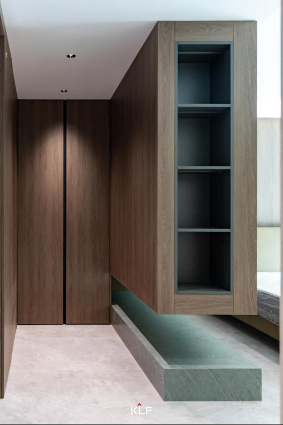 臥室衣帽間一體化設(shè)計,充分利用臥室空間,通過重視空間布局、設(shè)計元素和細節(jié),融合意式極簡風格,創(chuàng)造出自由舒適的居住環(huán)境。