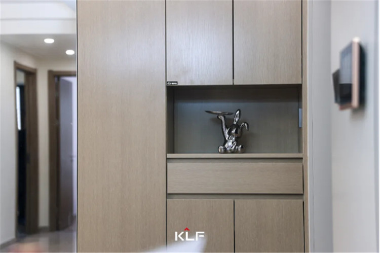簡約玄關(guān)柜設(shè)計,在有限的空間內(nèi)將柜子的功能發(fā)揮到了理想狀態(tài),擁有放鞋區(qū)、掛衣區(qū)、儲物區(qū)、裝飾區(qū)……滿足多種功能的同時,整體不顯得繁雜,實用又美觀。