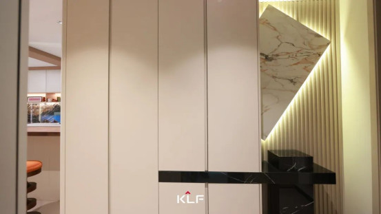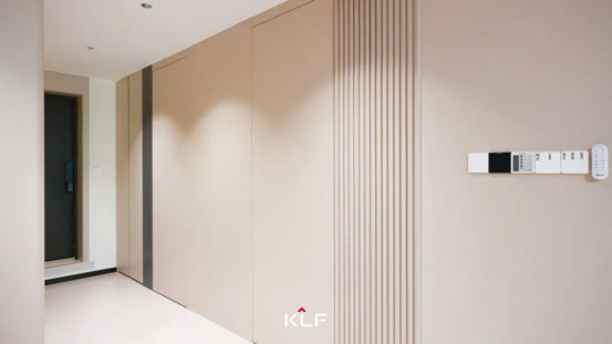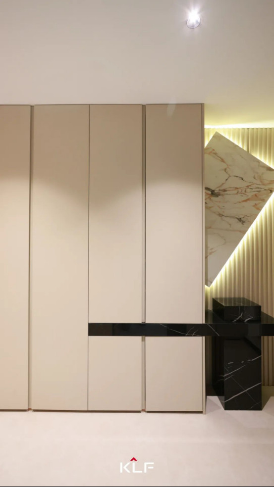入戶走廊兩側(cè)同色墻板和柜體強(qiáng)化了空間縱深感,關(guān)于家的故事正娓娓道來(lái)。定制玄關(guān)柜極簡(jiǎn)線條平直流暢,到頂式設(shè)計(jì)儲(chǔ)物能力拉滿,木質(zhì)格柵搭配奢石打破單調(diào),粗獷石紋肌理在光影流轉(zhuǎn)間煥發(fā)新生,讓整面玄關(guān)背景墻于沉穩(wěn)大氣中盡顯靈韻。