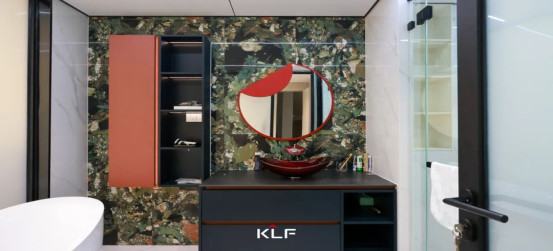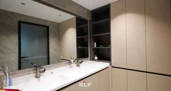獨(dú)衛(wèi)墻面延續(xù)爍玉流金的意式輕奢美學(xué)意象,衛(wèi)浴柜以深邃墨黑邂逅復(fù)古愛(ài)馬仕橙,碰撞出濃墨重彩的視覺(jué)交響,瞬間喚醒如度假酒店般的慵懶逸致。