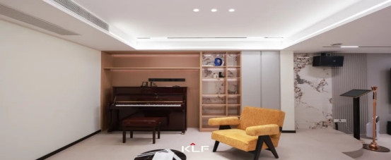 影音室兼鋼琴房中,低飽和度配色鋪陳靜謐基調(diào),布藝沙發(fā)舒展慵懶靈魂,溫潤(rùn)木飾面包裹墻面,冷峻大理石倒映光澤。多元化材質(zhì)肌理躍然生色,歸置有序的柜體布局將意式高級(jí)審美融入細(xì)節(jié)??臻g以飽滿的力量描摹光影詩(shī)性,每一道琴音落處,都是品位與溫情的和鳴。