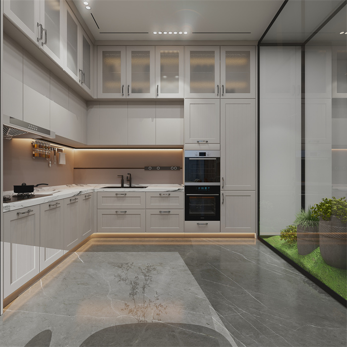 ?個舒適的廚房可以給我們做飯時帶來愉悅感,家里的廚房是反映?活?息的地?。U型的簡潔的動線設(shè)計和明確的功能區(qū)劃分使得整個烹飪變得有條不紊。 無把?的櫥柜造型簡潔,美觀大氣,其時尚的氣質(zhì)滿?現(xiàn)代年輕?的審美需求。