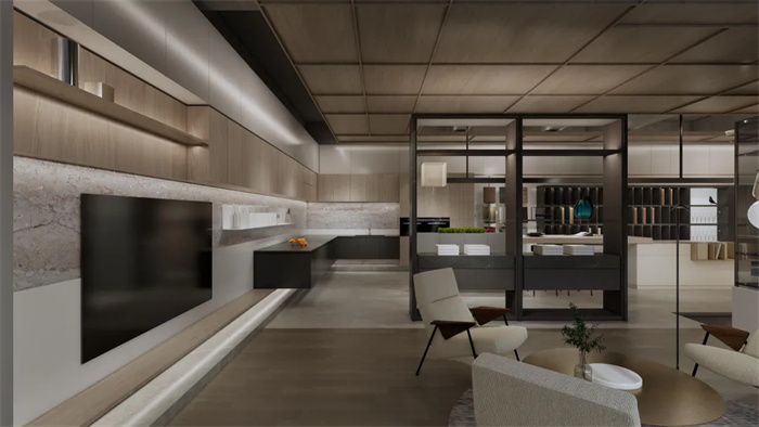 空間中看不見的氣韻是設計追問的本質(zhì)所在,東方意境的抽象文化,用線條和色彩的形式呼應空間,建立秩序感與層次性,展開現(xiàn)代簡奢品質(zhì)生活畫卷中詩意棲居。