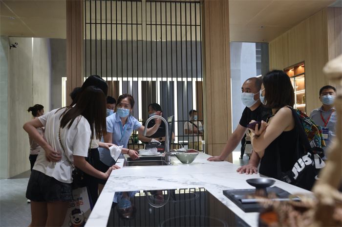 在本次建博會中,客來福推出全新水漆實木新品--“天琛”系列,前沿的設計手法,讓現(xiàn)代輕奢與中式典雅結合,用凝練的線條設計+蘊含東方風雅的設計元素打造出獨具一格的現(xiàn)代與中式混搭風格家居。相信參展過的朋友都會被“天琛”所吸引,不俗的設計感營造了一份不凡的輕奢家居,令人過目不忘。