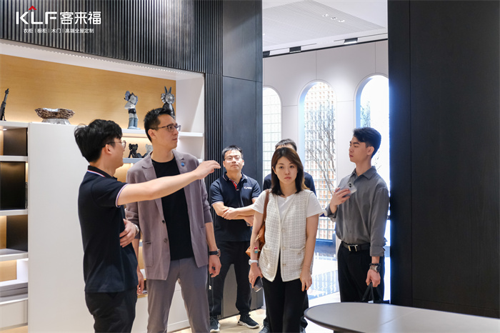 帶領(lǐng)中國建博會(huì)(廣州)團(tuán)隊(duì)首先來到客來福12代展廳,陳總等人在近距離感受客來福產(chǎn)品后,對其整體呈現(xiàn)效果表示肯定。客來福不同系列裝修風(fēng)格,都細(xì)致把控品質(zhì)、設(shè)計(jì)、色彩等,只為給受眾滿意的與時(shí)俱進(jìn)的特色產(chǎn)品。