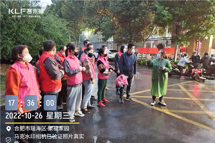 疫情就是命令,防控就是責任。封控期間,為了全面落實市委市政府、區(qū)委區(qū)政府關于瑤海區(qū)疫情防范工作部署安排 ,客來福家居股份有限公司志愿者紛紛參與疫情防控,以自身綿薄之力進一步筑牢疫情防控屏障,充分展現出客來福人熱情奉獻、勇擔重任的優(yōu)良品質。