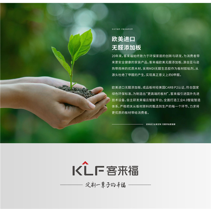 客來(lái)福家居作為國(guó)民品牌,從中國(guó)家庭需求出發(fā),一直潛心研究更環(huán)保的家居材料??蛠?lái)福在產(chǎn)品的環(huán)保賽道上一直深耕,相繼推出了歐美無(wú)醛添加板、福芯板等健康產(chǎn)品。