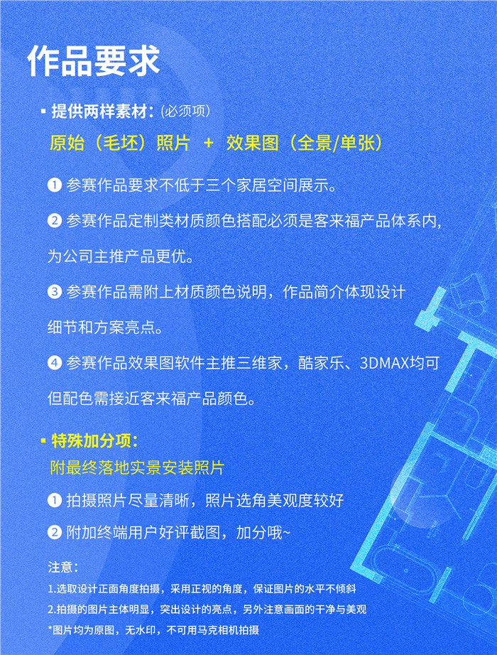 注:所有作品必須為本年度內(nèi)設(shè)計(jì)師獨(dú)立完成的方案,如有盜取、冒用他人作品的一經(jīng)查實(shí)取消參賽資格,并通知當(dāng)?shù)亟?jīng)銷商。