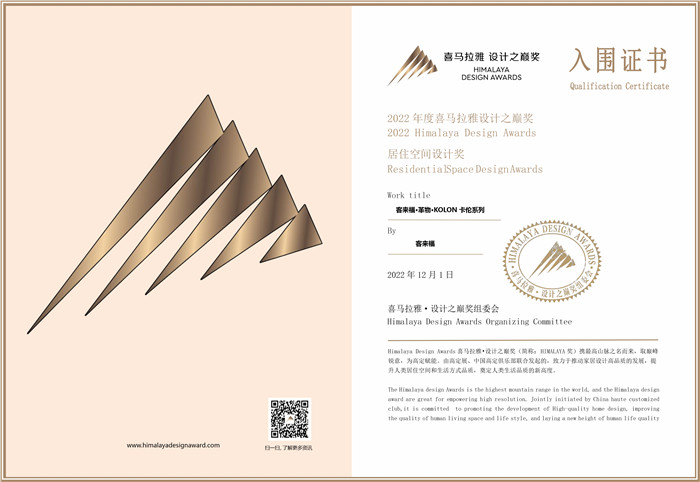 崢嶸歲月,初心不改。客來福家居在2022年榮獲“中國家居綜合實(shí)力100強(qiáng)品牌”稱號,其「墨奈系列」入選《2021-2022中國家居行業(yè)精品年鑒》,「客來?!じ镂铩?/span>KOLON卡倫系列」入圍“HimalayaDesignAwards喜馬拉雅·設(shè)計(jì)之巔”居住空間設(shè)計(jì)獎。(查看原文)