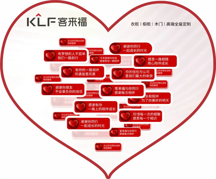客來福(KLF)KeepLoveForever,寓意客來福至,讓愛無界!其中的“客”就是大家!客來福遵循“客戶是天,產(chǎn)品是命,品牌是魂”的企業(yè)價值觀,所以一直風雨無阻的堅持了17年感恩行動,為了就是讓大家感受到產(chǎn)品與服務帶來的幸福感,傳遞幸福,至福于家。