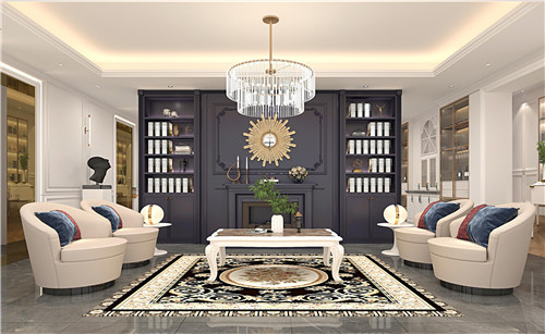 選用燈具、金屬壁掛、地毯等多種配飾,不同配飾共同構(gòu)成空間的多重表達(dá),裝飾選材也非常豐富,整體營(yíng)造出古典與高貴的氛圍。