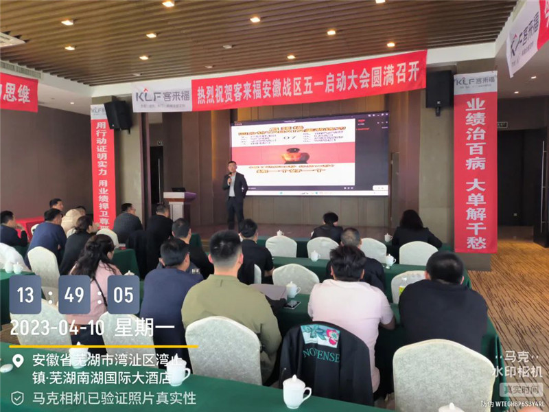 2023年4月10日,客來福安徽戰(zhàn)區(qū)五一啟動大會于蕪湖圓滿召開,安徽戰(zhàn)區(qū)總監(jiān)姚磊與安徽戰(zhàn)區(qū)經(jīng)銷商齊聚本次大會,共同商討五一活動等相關(guān)事宜。