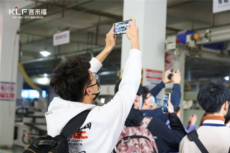 參觀第一站,安農(nóng)大師生們來到客來福家居的4.0智能化生產(chǎn)車間??蛠砀W灾餮邪l(fā)的4.0智能終端系統(tǒng)是通過智能化的設(shè)備和一體化的流程進(jìn)行智慧升級,驅(qū)動產(chǎn)業(yè)科技的變革。在現(xiàn)場,大家通過實看與講解進(jìn)一步來了解客來福數(shù)字化、智能化的生產(chǎn)模式。