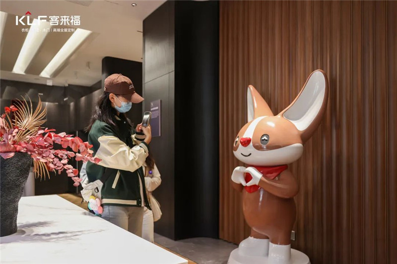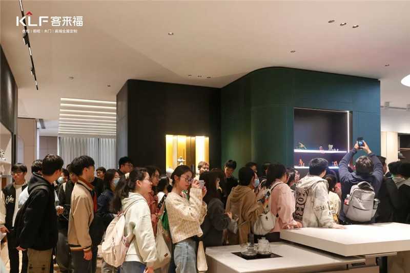 來自安農(nóng)大的學(xué)子們親自觸摸板材,感受家居設(shè)計的魅力,他們對客來福家居的產(chǎn)品設(shè)計和IP形象都表達(dá)出了自己的贊美和喜愛,紛紛在展廳內(nèi)拍照打卡。