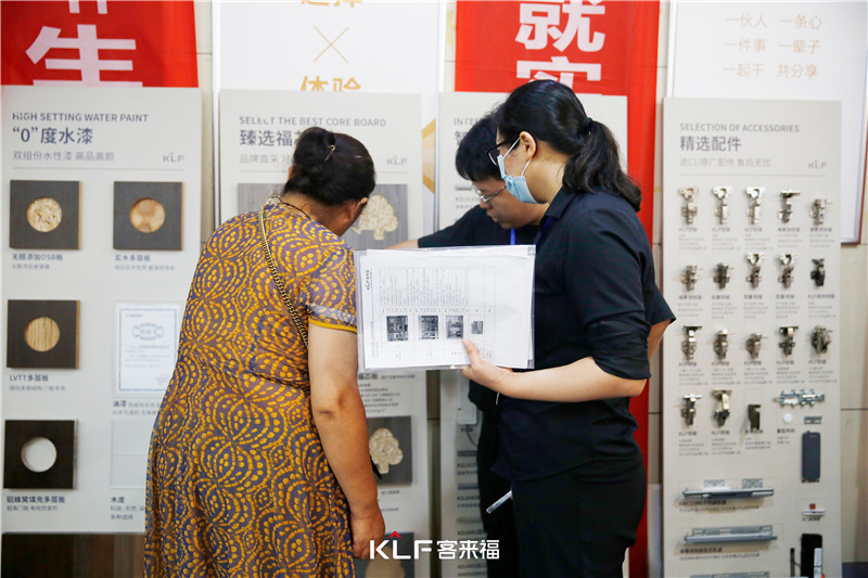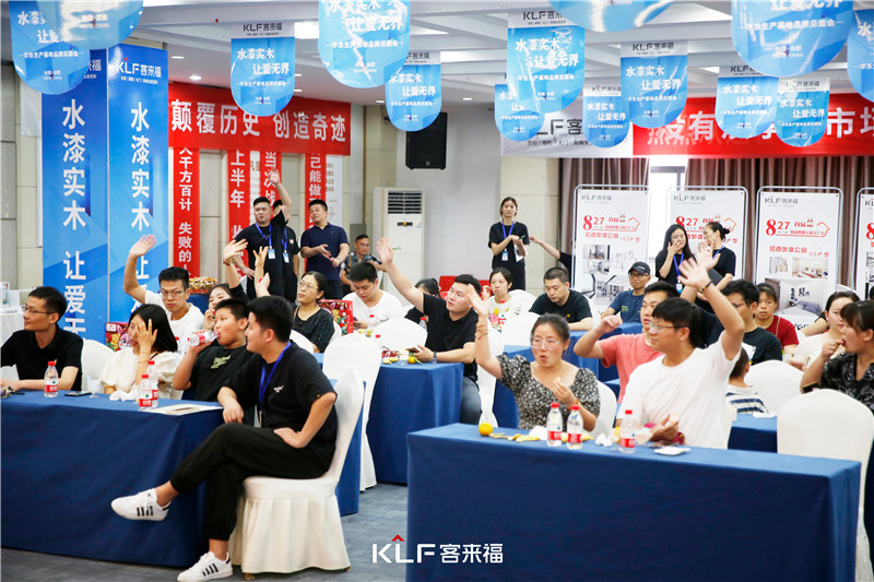 開(kāi)場(chǎng)互動(dòng)結(jié)束后,負(fù)責(zé)人也向大家進(jìn)行了客來(lái)福的品牌及其產(chǎn)品介紹,讓大家了解客來(lái)福的核心板材和全屋定制。