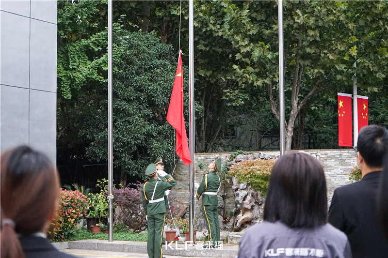 鮮艷的五星紅旗飄蕩在公司上空,莊嚴而盛重,同時也寓意著客來福大家庭未來的欣欣向榮、向陽而生。
