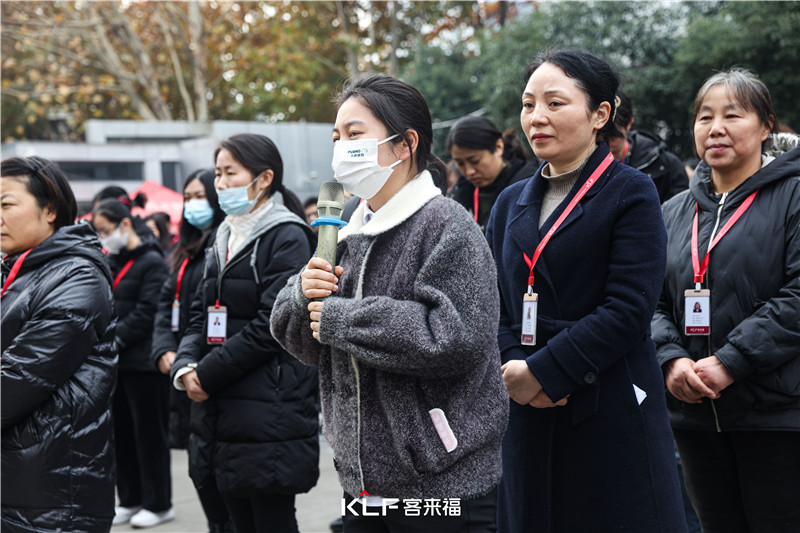 寒冬抵擋不住客來福人的熱情。在經(jīng)過簡單的整隊后,各中心負(fù)責(zé)人匯報人員到場情況。隨后,在“締造幸福家居生活,讓愛無界”洪亮整齊的價值觀宣讀中,12啟動會正式拉開序幕。