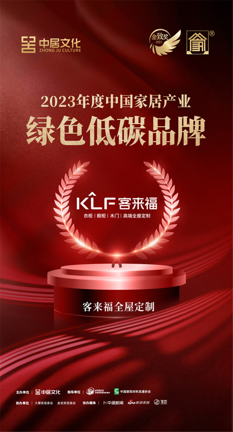 金致獎(jiǎng) | 客來福全屋定制榮獲「2023年度中國(guó)家居產(chǎn)業(yè)綠色低碳品牌」