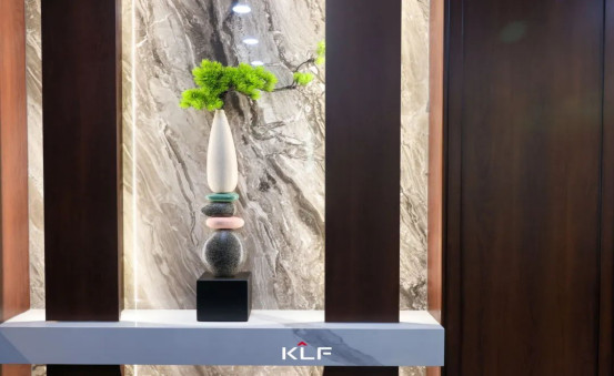 頂部射燈與隱藏燈帶形成雙重照明系統(tǒng),流動光影與水墨石紋虛實相生,氣韻生動,以小見大傳遞出“詩畫茶器”的人文底蘊。