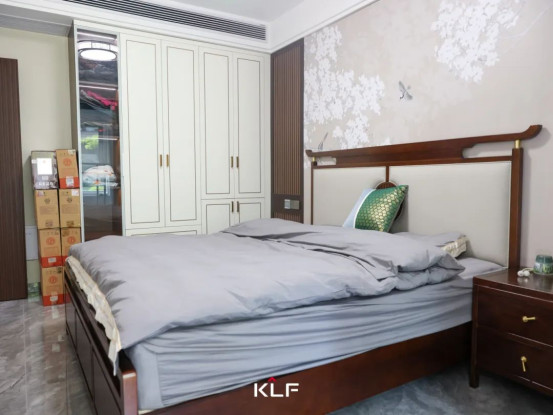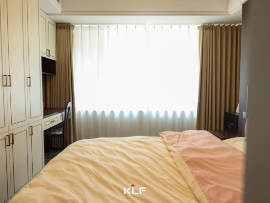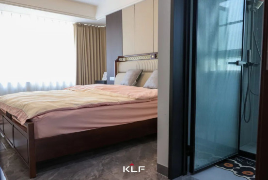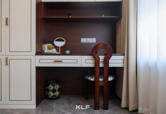 主臥整體色調(diào)偏清新淡雅,又點綴以少許深木色來強調(diào)新中式的穩(wěn)重感。家具造型古樸端莊,照明方式光而不耀,層次布局上講究“宜設而設,精在體宜”,精妙的動線規(guī)劃讓每一處細節(jié)都內(nèi)斂克制,卻又精準回應著居者的情感需求。